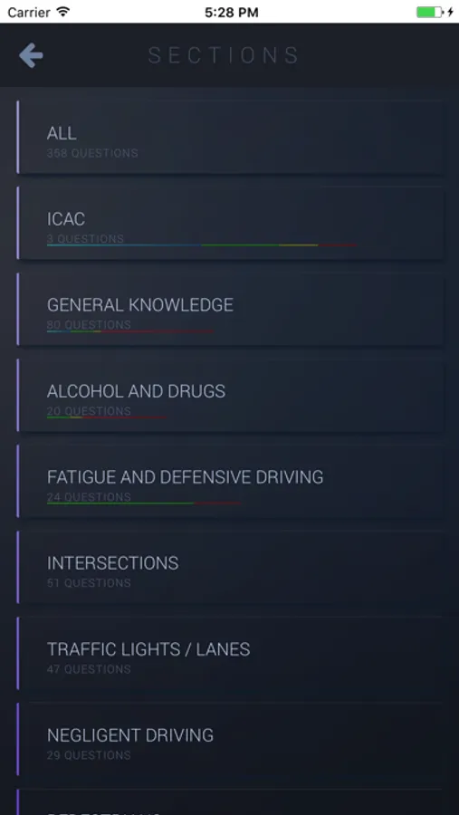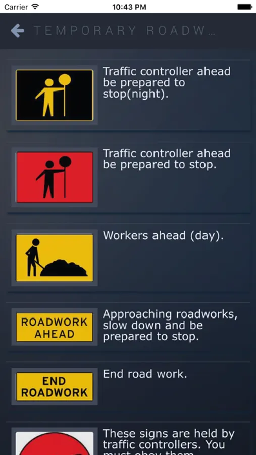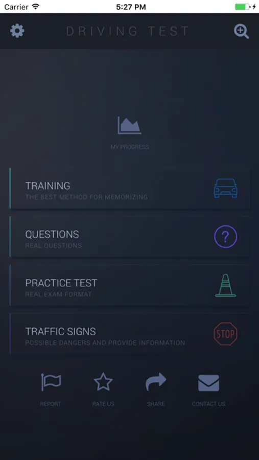 In addition to the training exercises – the application shows the graph of your training progress and grants you access to all of the questions that appear on the Australian RTAs Drivers Knowledge Test (DKT), divided into categories, road signs, simulations of the actual DKT test format and the option to work on your errors.