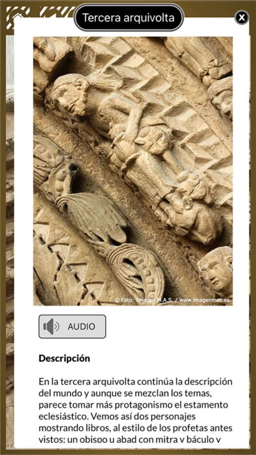 De funcionamiento fácil e intuitivo la aplicación permite descubrir cada uno de los detalles de los relieves y conocer su significado. Nunca has tenido tan cerca estas maravillosas y asombrosas escenas de una de las joyas escultoricas del románico espàñol y uno de los hitos del Camino de Santiago francés.