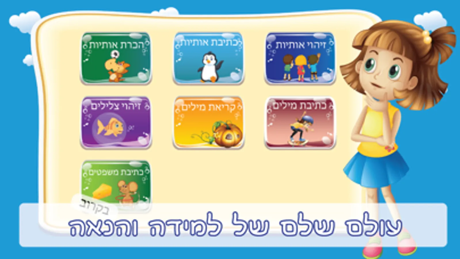 המשחקים באפליקציה ללימוד קריאה וכתיבה והכנה לכיתה א':