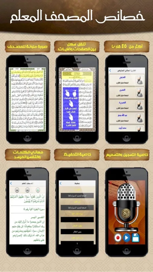 - ميزة تكرار تلاوة الآية بعدد محدد بغرض التحفيظ والترديد مع القارئ.