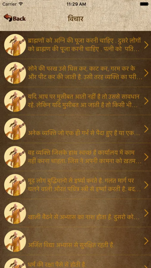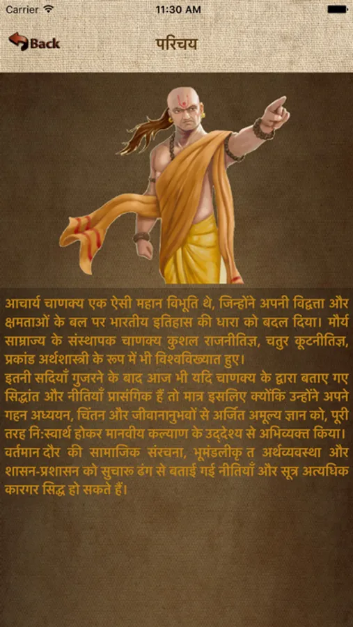 App includes thoughts of The Great Chanakya. It is in Hindi language.