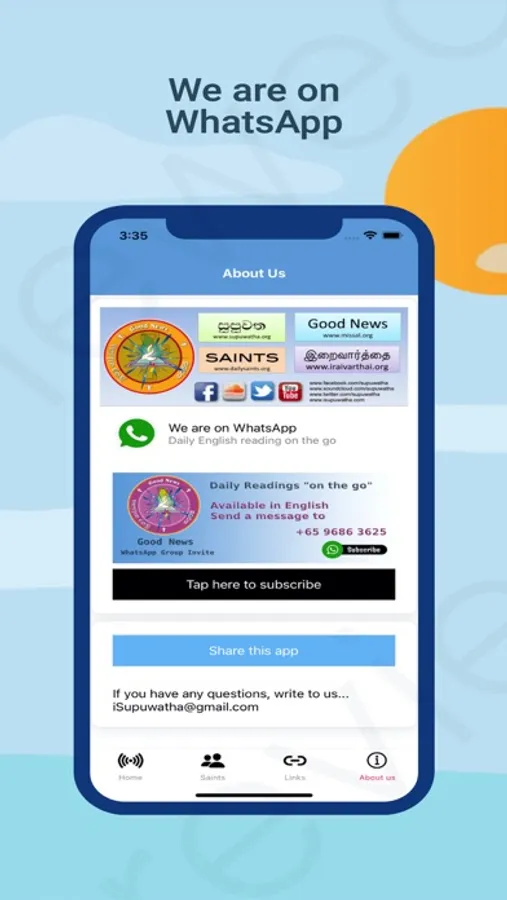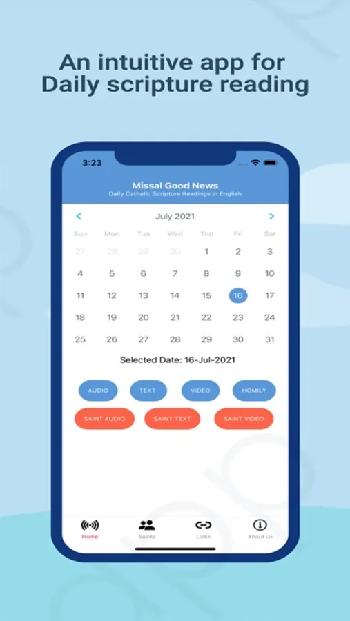 You have the option to share the readings Audio, Video, Text and Saints Audio.