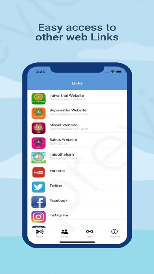 Third option contains the links to our websites. Such as our You Tube, Instagram, Twitter, Facebook and all our websites... These websites are in three languages. Tamil, Sinhala and English. Please feel free to subscribe to them.