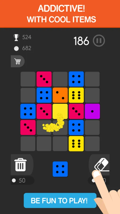 100% No annoy ads pop up! Join the new! Greatest Game for the relaxing time. "Super Dices Merger - MASH!"