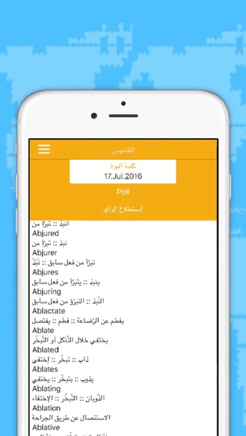 يحتوي على كلمة اليوم بحيث ينبهك يوميا لبعض الكلمات التي ربما تحتاج اليها