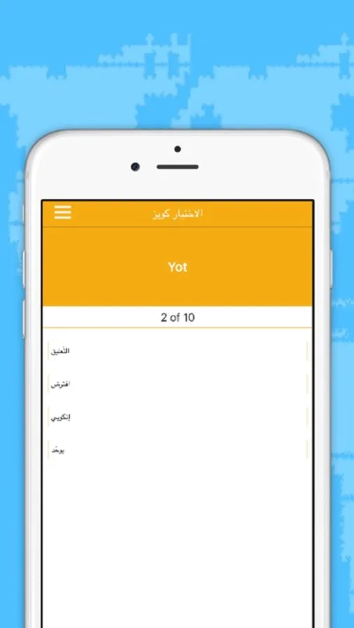 تطبيق يساعدك في حفظ الكلمات يحتوي على كويز واسئلة تختبر قدرتك في حفظ الكلمات وتعطيك النتيجة في نهاية الكويز او الاختبار