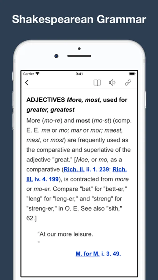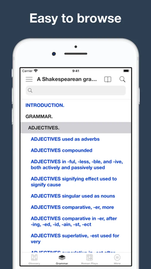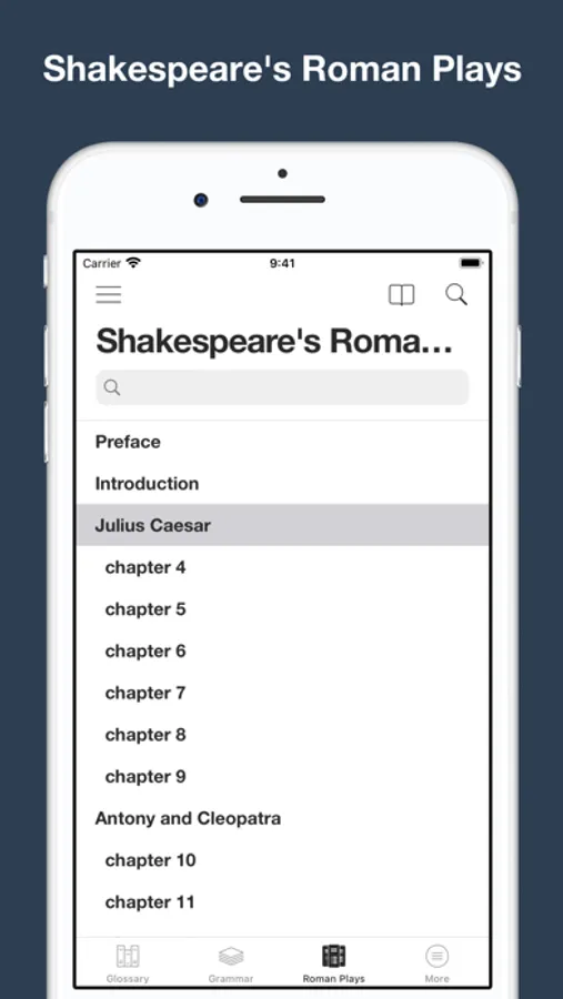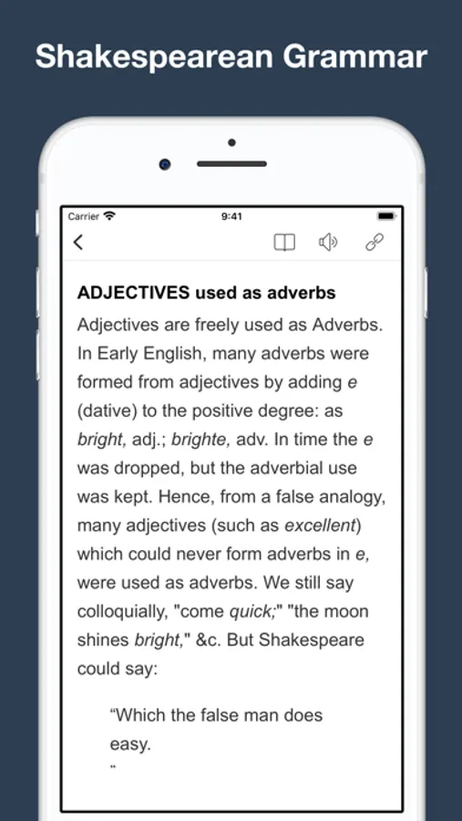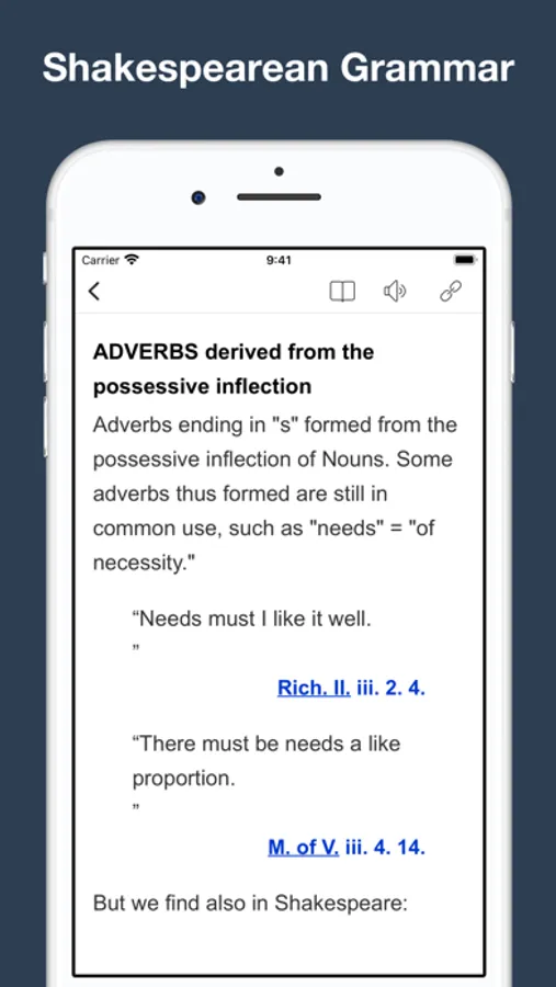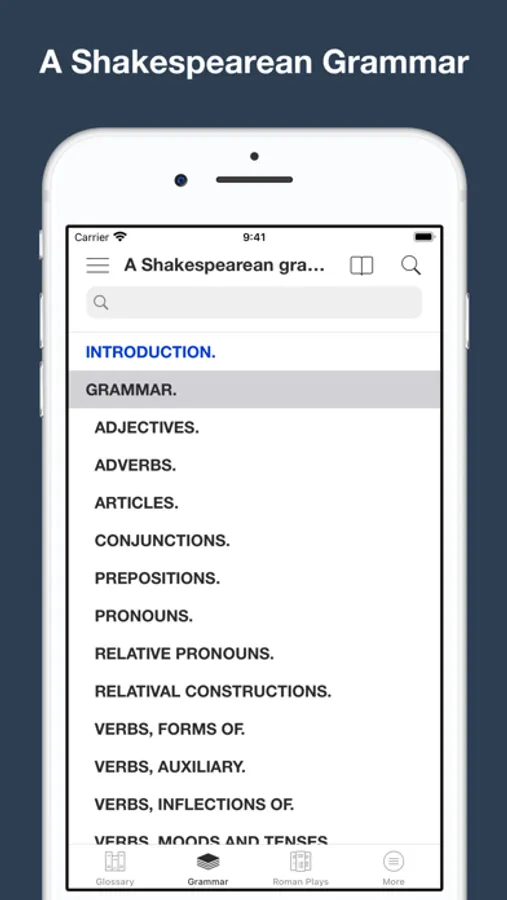 This app provides an offline version of A Shakespearean Grammar, General Glossary to Shakespeare's Works and Shakespeare's Roman Plays and their Background