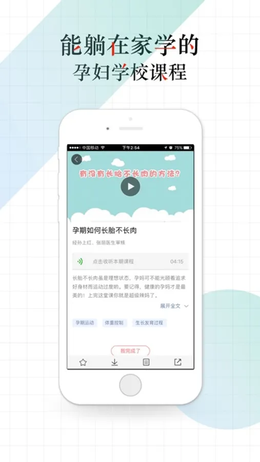 【专属课程】一套专业的孕妇学校课程。动画、音频、文章,多种形式随心选择