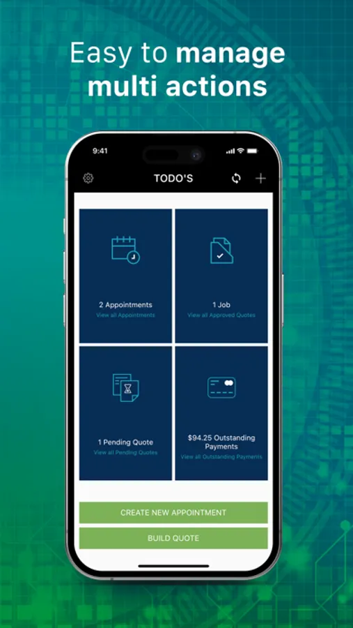 Turn your jobs and quotes into beautiful, professional-looking invoices that can be sent to your customers as PDFs via email. Manage your jobs with ease, rescheduling, completing, and reopening them as needed.