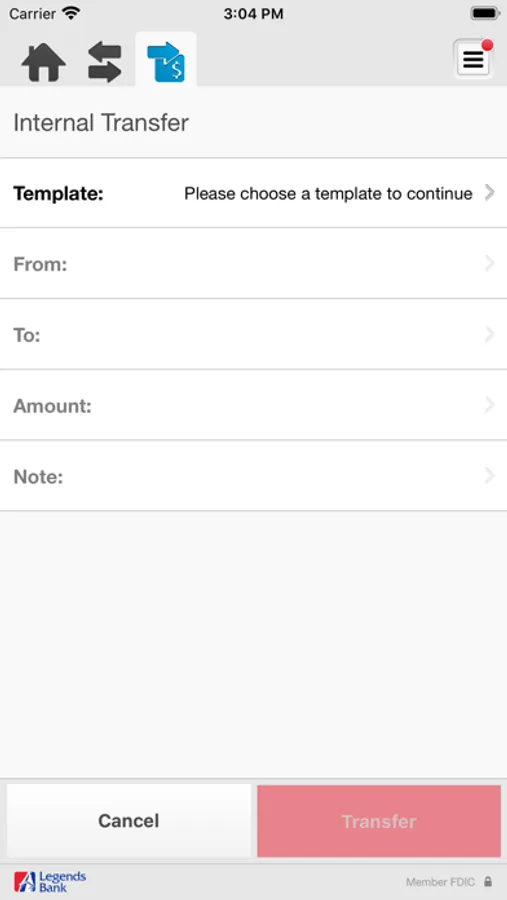 • Transfer money between accounts