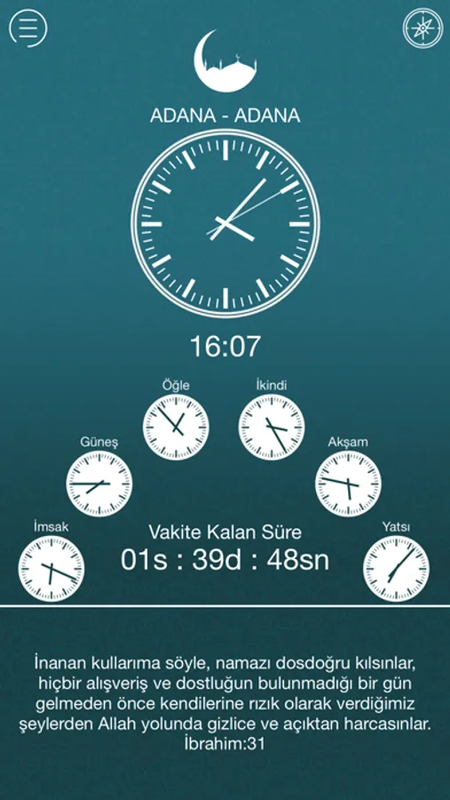 Uygulamamız sade tasarımı ile sizlere namaz vakitlerini en sade şekliyle sunmaktadır.