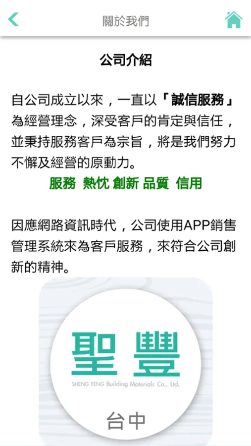 因應網路資訊時代,公司使用APP銷售管理系統來為客戶服務,來符合公司創新的精神。