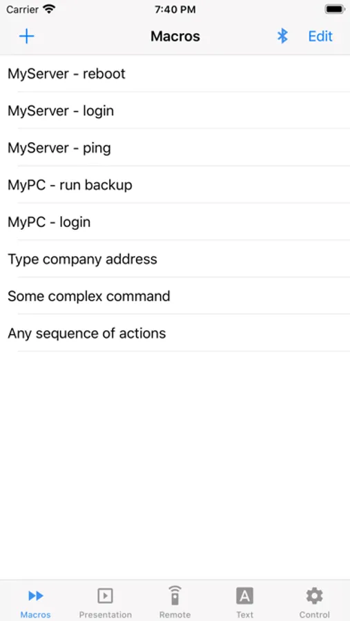 - create and execute macros (pre-defined sequences of keyboard and mouse actions). For example: you can type long and complex command with just two clicks
