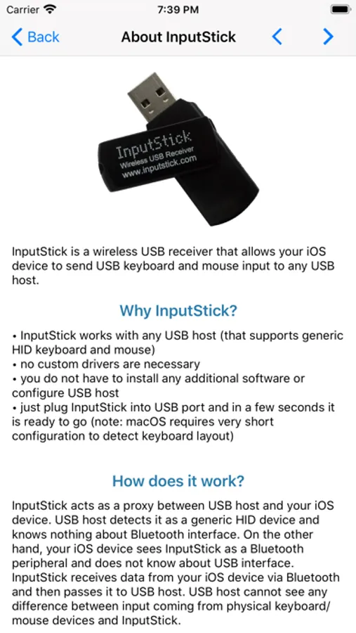 *** InputStick USB receiver (Bluetooth 4.0) is required! App does NOT work over USB cable! ***