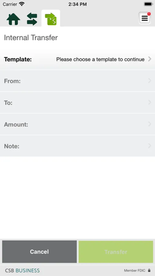 • Transfer Funds — Move money from CSB account to another.