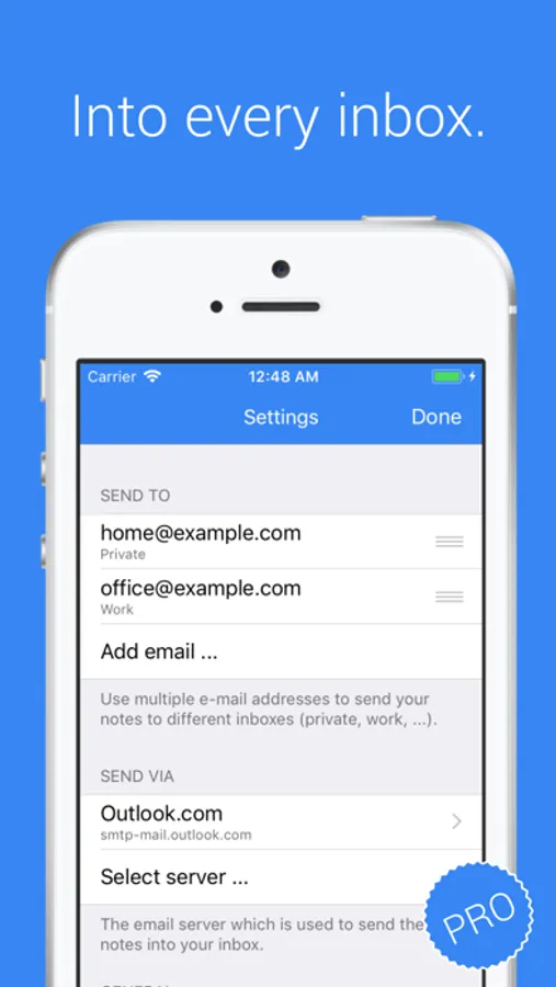 "Note To Self Mail" is the fastest app for your notes. You can send your notes directly into your inbox, fast and without much effort and detours.