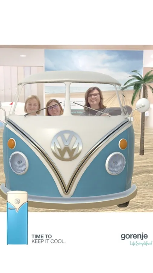 Explore the Gorenje Retro Special edition refrigerator in augmented reality. Discover the fun side of the refrigerator that draws inspiration from the legendary Volkswagen Bulli van. Go on an adventure through its many colorful options and different environments from which you can take a souvenir - a memorable polaroid picture.