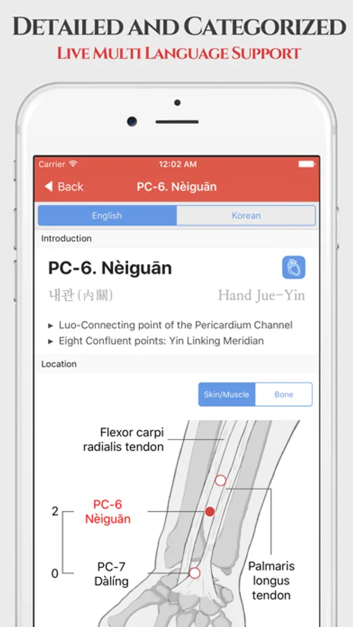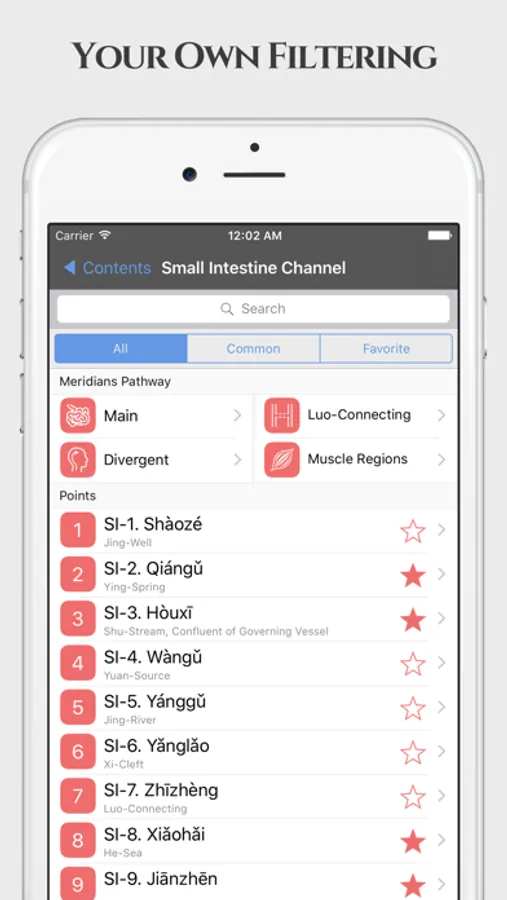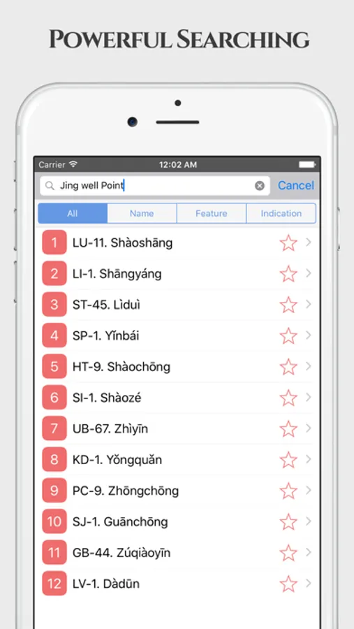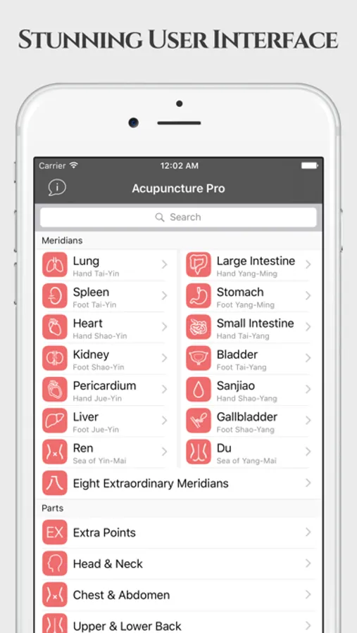 • Powerful search engine integrated: Search with supported languages(English, Chinese, Korean) by name, indications, and features of points