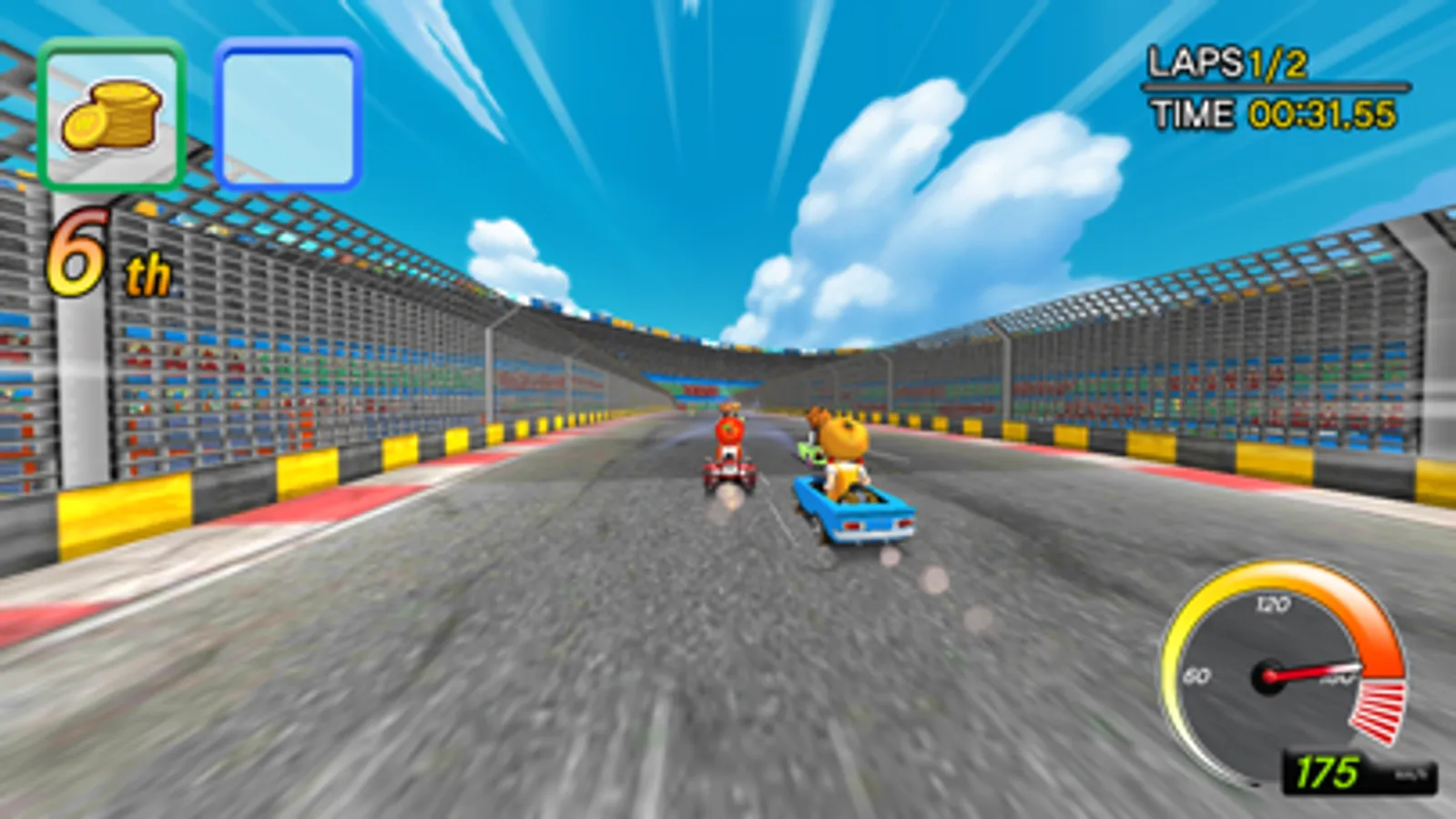 You can attack or defend your rival cart with items coming out of the game and enjoy the speed feeling that you have excited with the booster item !!