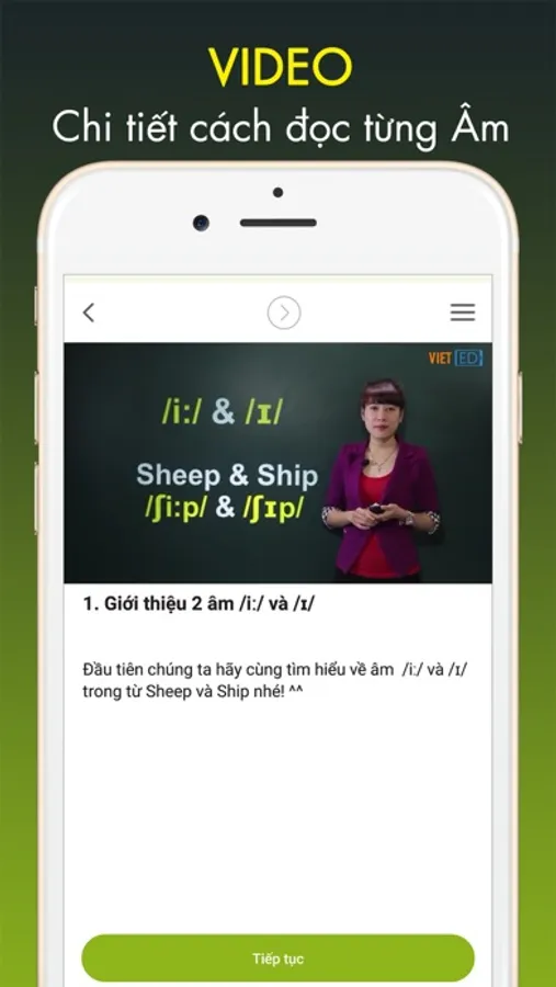 2. Mỗi khóa học đi kèm với hướng dẫn chi tiết cụ thể cách phát âm các từ trong đoạn hội thoại, bao gồm các lỗi phổ biến người Việt hay mắc phải.
