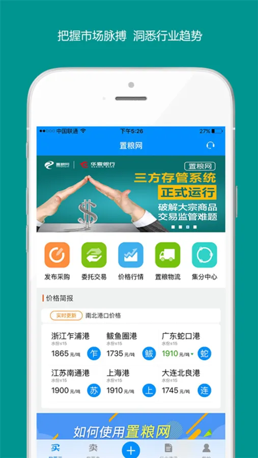 置粮网是利用互联网技术为用粮企业提供集粮食交易、资讯、物流、金融等于一体的综合性服务平台。同时凭借平台的大数据优势,为企业提供专业的行情分析、监测预警等服务;通过资源整合为企业提供优质的产品及优惠的价格,帮助企业扩大市场份额、获取更大的利润空间。