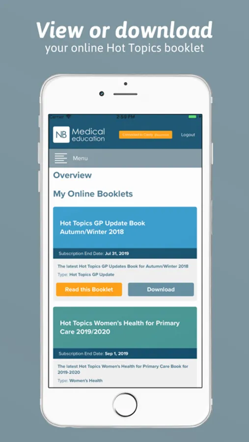 The NB Medical app will give you full access to the Hot Topics online resources. This includes purchased Hot Topics Booklets, Webinars and Webcasts.