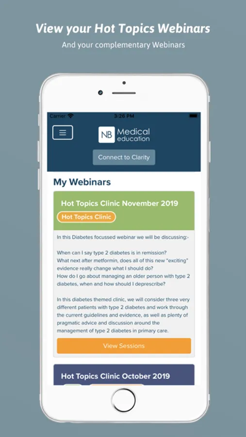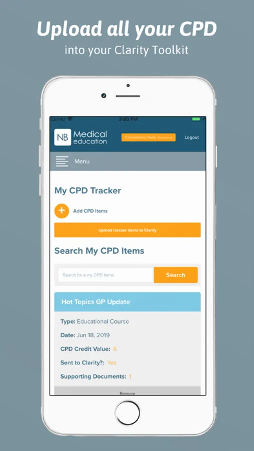 The NB Medical app also provides you with access to all Hot Topics free webinars to view at your leisure and claim your CPD points. Keep track of your CPD points on the go, and even quickly add new ones to keep up to date. Your CPD can then be easily uploaded into your Clarity Appraisal Toolkit at the touch of a button.
