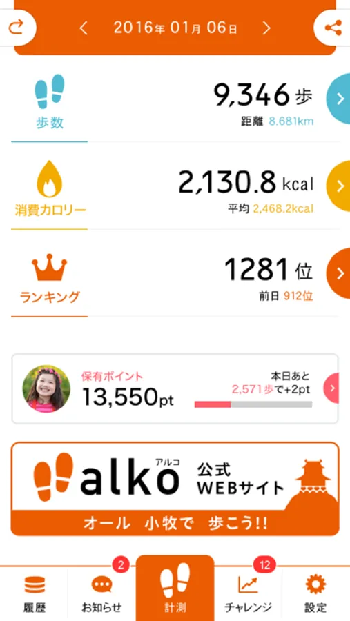alko(アルコ)は、健康づくりに取り組むきっかけとして、楽しみながら歩く習慣を身につけることを目的とした愛知県小牧市の公式ウォーキングアプリです。