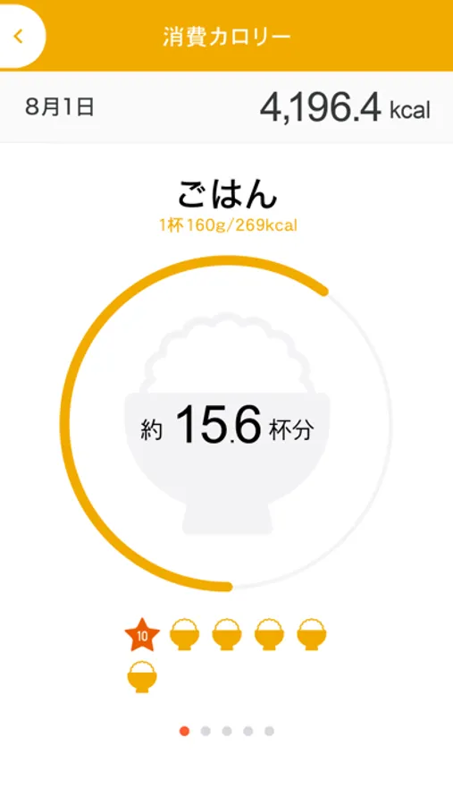 1日の、歩数、歩行時間、消費カロリー が一目で確認できます。