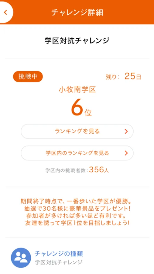 ・学区対抗:◯日間で学区毎の平均歩数を競い合う、学区毎の団体戦。