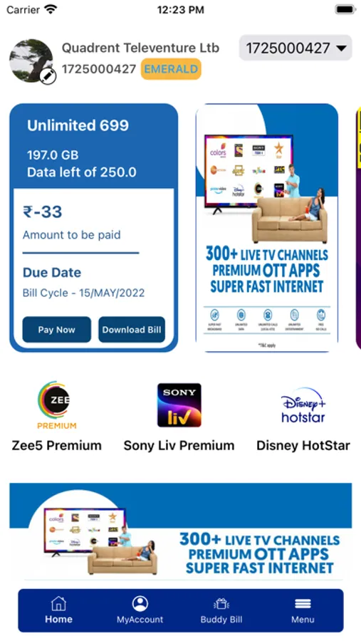 Connect Broadband Mobile App Offers following Features to Wireline and Broadband Customers:-
