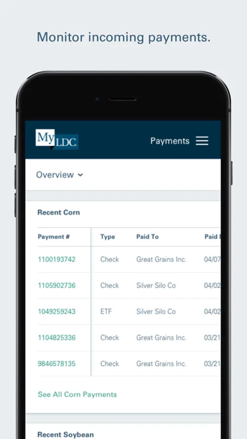 Managing your contracts just got a lot easier and more transparent. MyLDC is a simple and secure way to track your contract progress with the Louis Dreyfus Company. Now all of your documents are automatically organized and available at the touch of a finger.