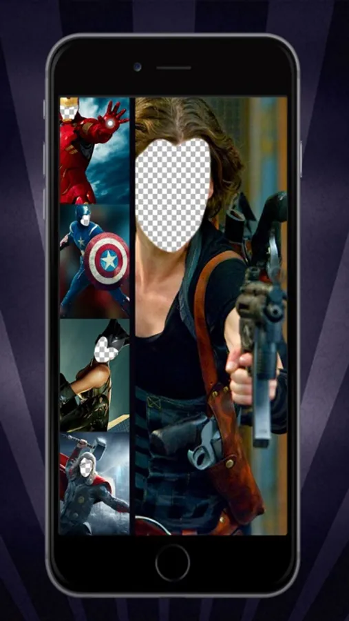 With this app you can take pictures or choose from your gallery and put many amazing heroes figure in you