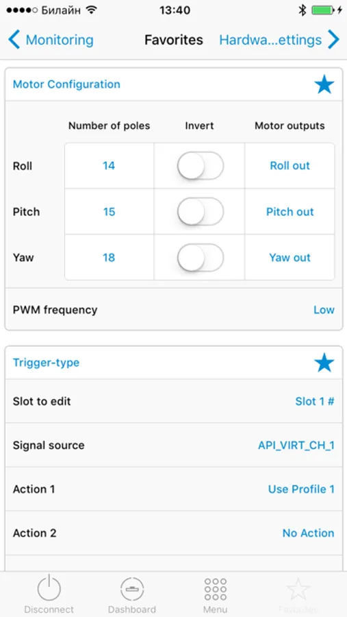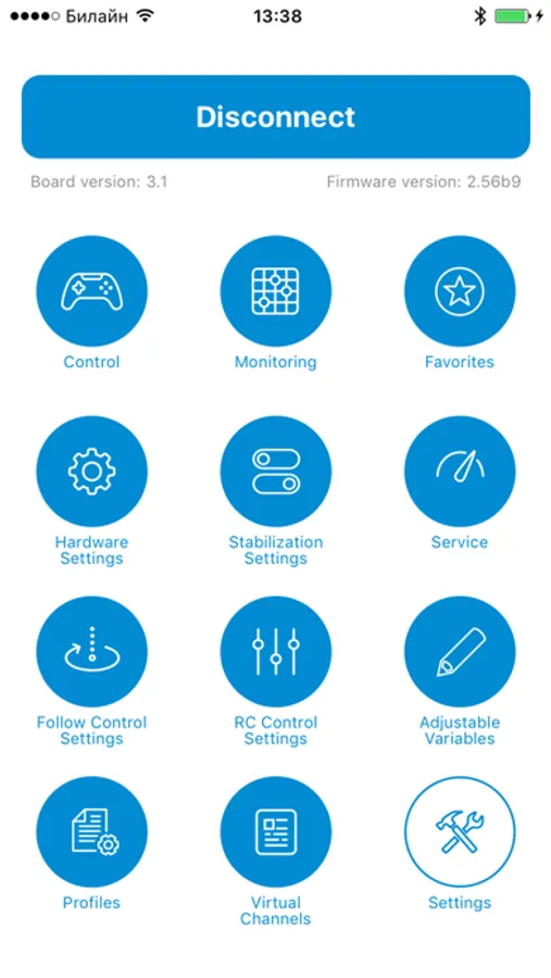 The app has the same functionality like desktop GUI for BaseCam SimpleBGC.