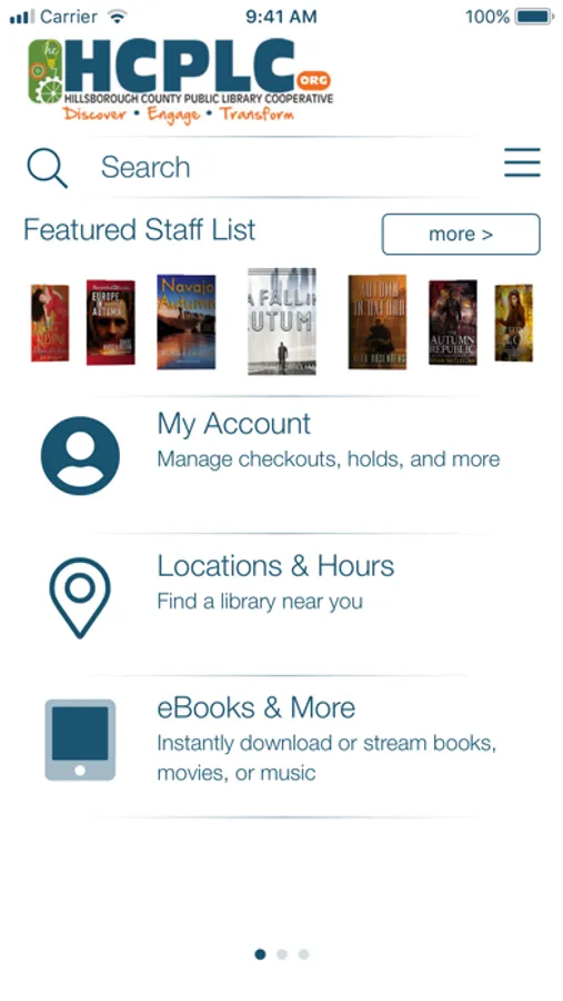 With the HCPLC app, you can find and discover titles, place holds, and manage your account. Plus, you can find your nearest library location, view upcoming programs at your local branch, and access featured digital resources.