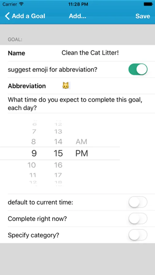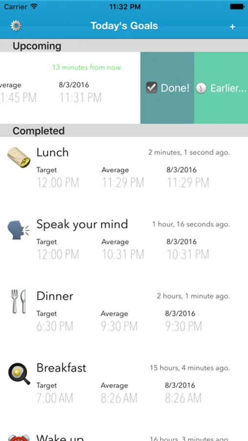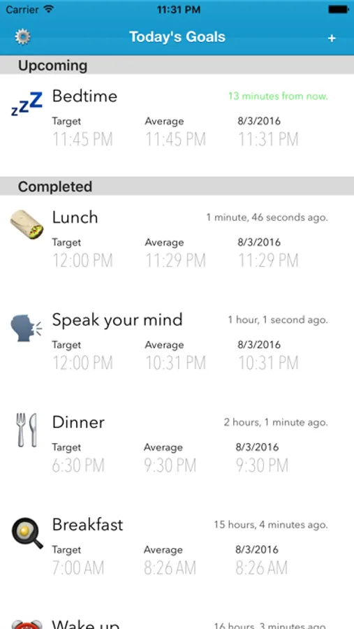 Each goal has a name, an abbreviation (you can use emoji to liven up your routine!), and a target time. Goals can also have alternative target times for different days of the week, or target times can be set relative to other goals. Routinely will track your average completion time for each goal, and let you know when you’re on a completion streak. You can create custom goals, or choose from a library of suggestions.