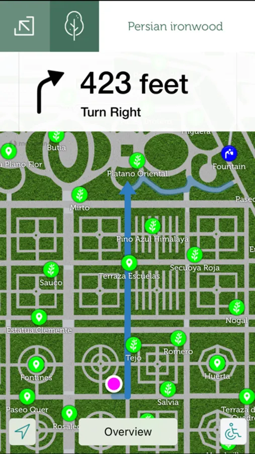 Also, the app has a gps system and interactive map that will provide your exact location anytime, and easy-to-follow directions to any place in the Garden (all routings are also available for handicapped people).