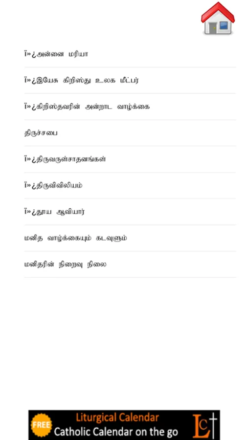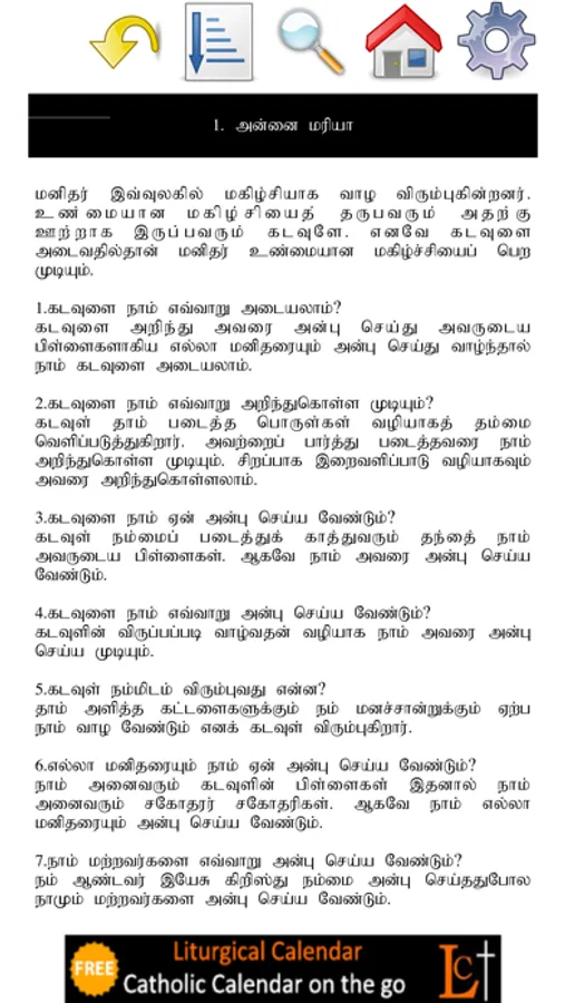 Tamil Catechism Book (Thiru Marai Suvedi) is the application for Catholic Catechism in Tamil Language. Catechism is the basic theology of Catholics. This application has all the questions & answers every catholic must know and understand. Your kids will learn these prayers before they get Holy Communion or Confirmation.