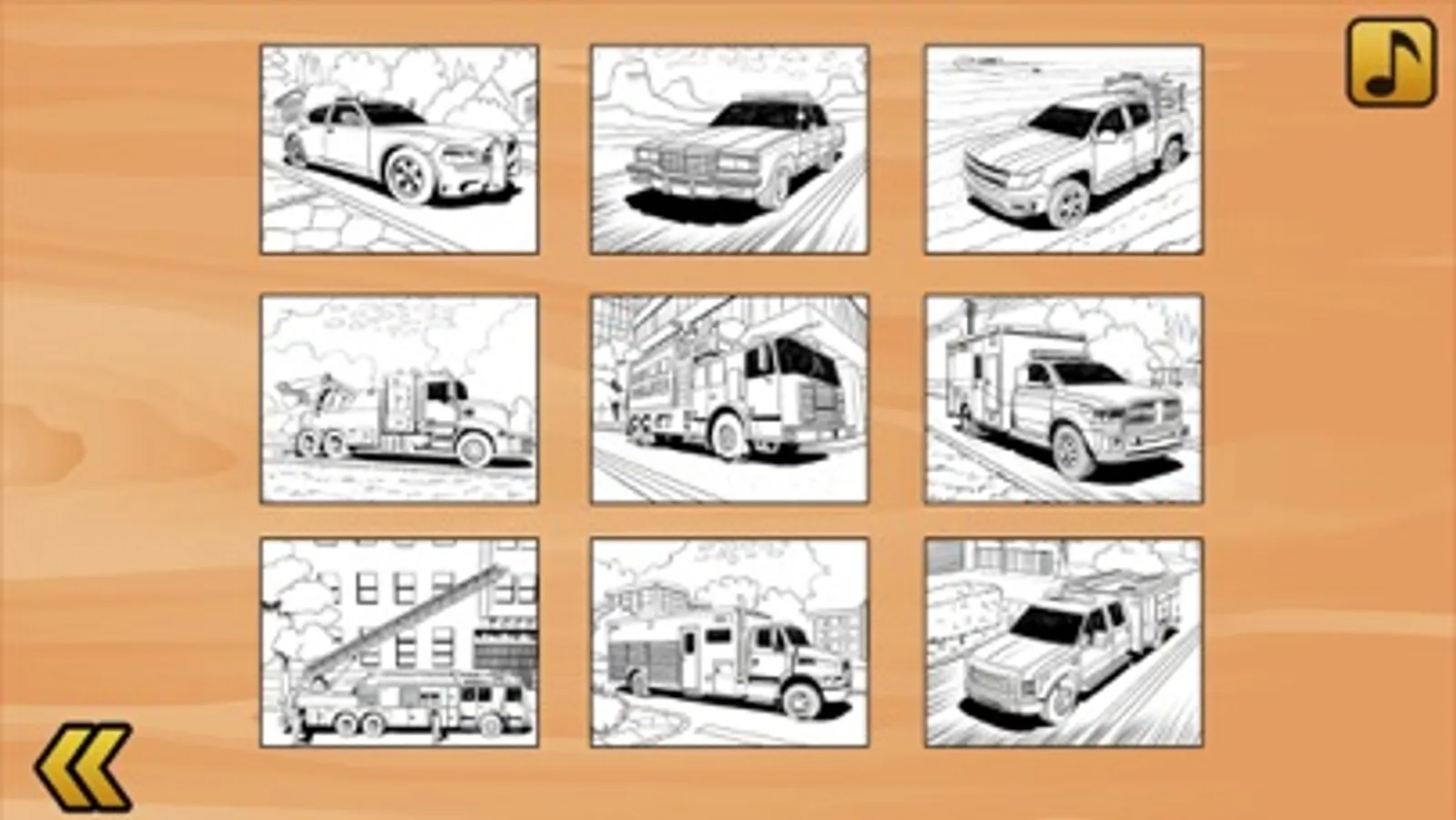 This app contains 10 high detailed vehicles with interactive functions to play with: