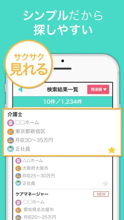 「介護士求人」はあらゆる介護系の求人サイトに掲載されている情報(介護福祉士、ケアマネージャー、ヘルパー、訪問介護の求人情報)をより探しやすく、簡単に管理できるように改良したアプリです。