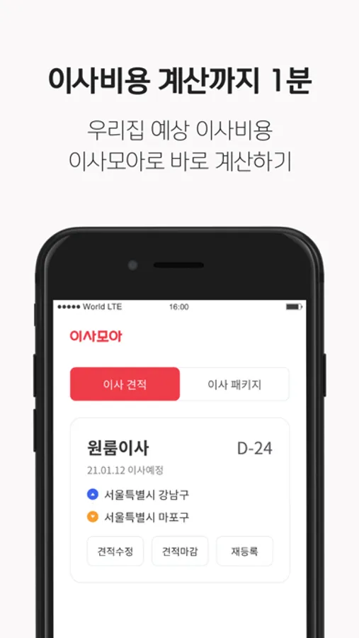 우리집 이사비용 전화 없이 이사모아 앱에서 바로 계산하세요.
