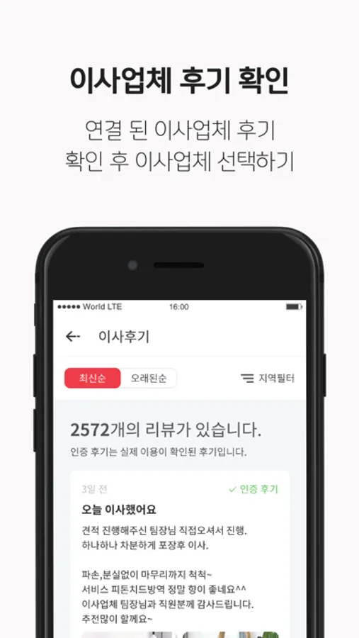 실사용자가 작성한 이사업체들의 후기까지 한 번에 확인하세요.