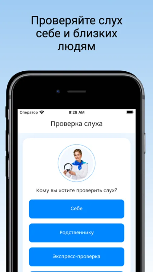 Клиника Слуха "Аудионика" представляет экспресс проверку слуха с помощью фирменного приложения. Просто скачайте это приложение, наденьте наушники и начните проверку.