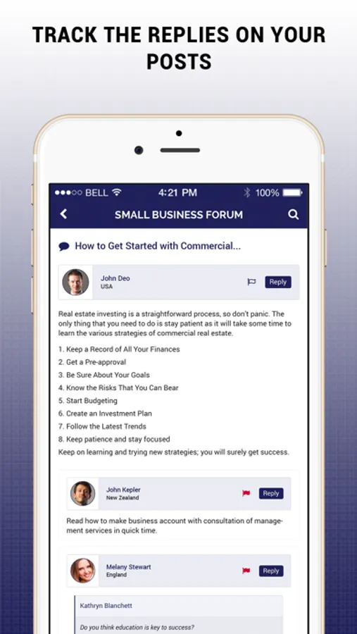 The app addresses various aspects of small businesses like – starting your business, managing your business, finance, account & tax, legal & HR, and marketing. These are listed as topics in the app. You can easily post your queries or business issues related to any of these topics. Soon you will be receiving several helpful solutions to your problem from other businesses professionals who are members of the forum.