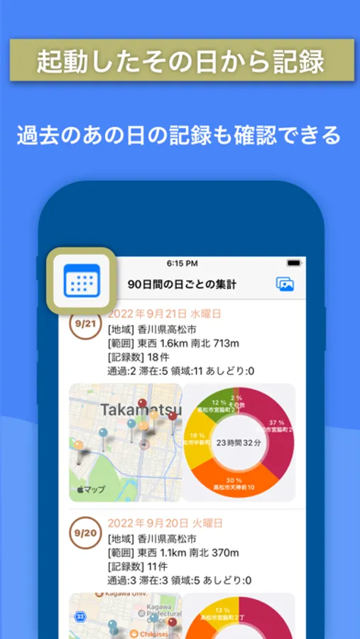[あしどり]はスイッチを有効にした期間の詳細な移動情報を記録します。