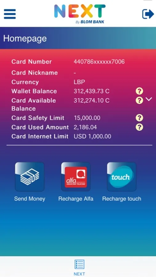 - Check your NEXT card/wallet balance and track your daily spending within seconds