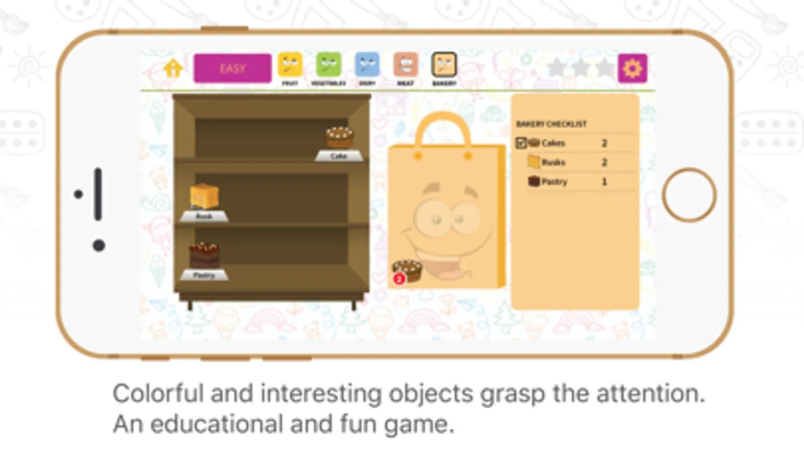 Grocery Expert is a fun activity game that uses one most important and widely used technique. It requires the user to pick right amount of grocery objects (fruits, vegetables, dairy etc) in the grocery bag.
