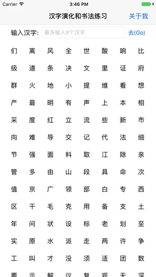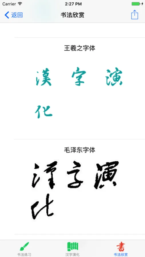 提供易用查询界面,查询汉字演化图,各种字体,颜真卿字体, 柳公权字体, 欧阳询字体, 赵孟钴字体, 毛体, 楷书, 行书, 篆书, 隶书, 金文。