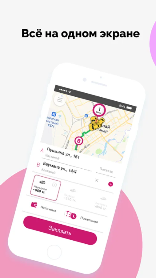 Откройте приложение, укажите адрес и закажите такси, нажав на одну кнопку.