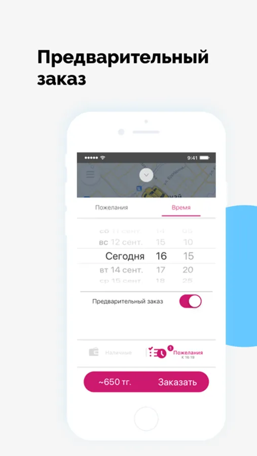 Нужен автомобиль к определенным времени и дате? Закажите его заранее через приложение, и в назначенное время такси будет ждать вас у подъезда.